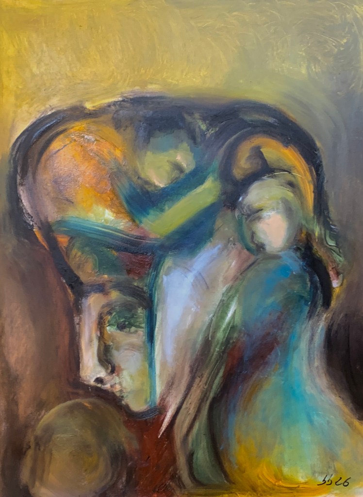 Huile sur bois Biface R°: « L’attente « – V° : « La contemplation«